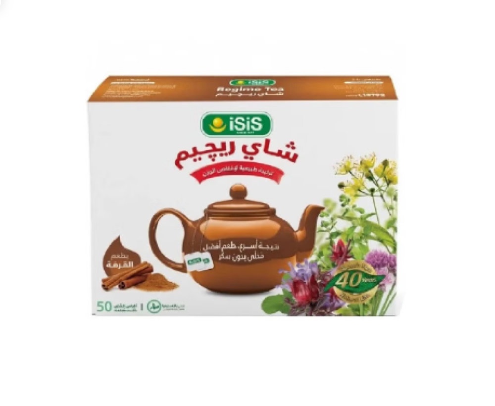 شاي ريجيم بطعم القرفة من إيزيس هو خليط من الأعشاب المعروفة والفعالة مثل شاي أخضر ,شيكوريا , نبات الاستيفيا , ونكهة القرفة الطبيعية.