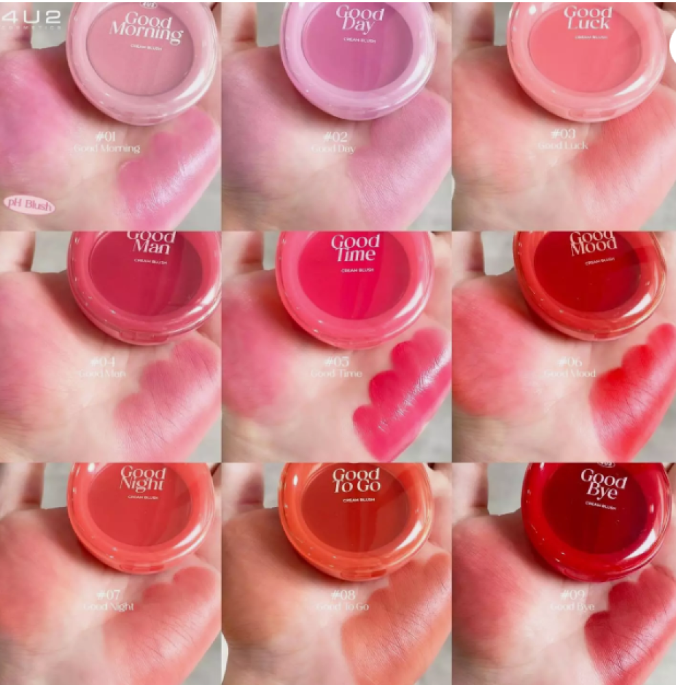 U2 GOOD CREAM BLUSH نباتي 100%، يدوم طويلاً، يوضع على العينين والخدين والشفاه!