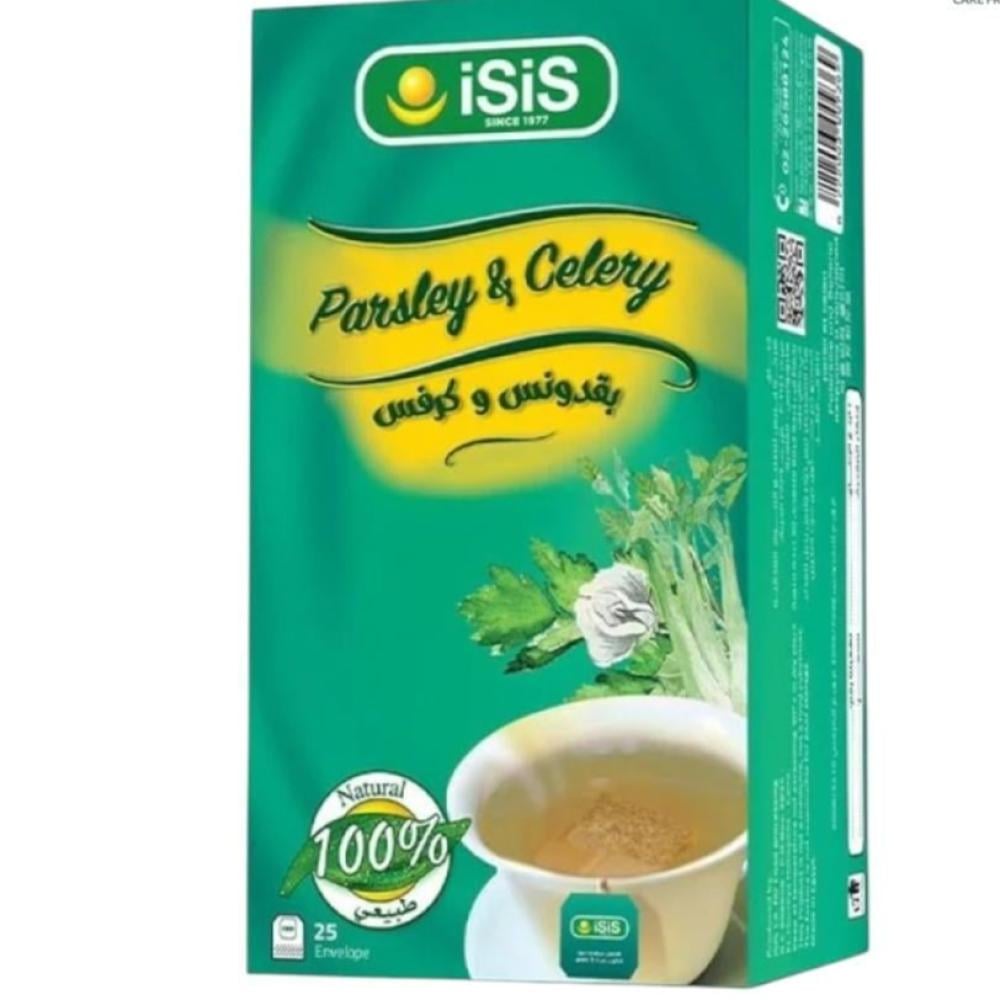 شاي البقدونس والكرفس العضوي من علامة iSiS هو مزيج عشبي طبيعي يأتي في عبوة تحتوي على 25 كيس شاي.